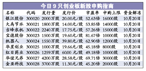 第三批创业板9只新股今日申购 红日和华谊或受青睐