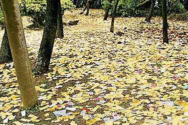 叶家祖祠后方坟土,撒满了子孙祭祖的纸钱。图片来源:台湾《苹果日报》