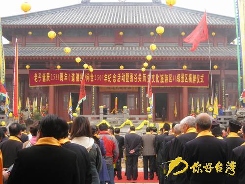 你好台湾网4月1日消息 30日,老子诞辰2581周年《道德经》问世2501年纪念活动暨函谷关历史文化旅游区4A级景区揭牌仪式在灵宝市函谷关大道院隆重举行。中国老子文化发展公益基金管委会主任何俊昆、台湾朝圣团总团长林秋雄、河南省旅游局副局长张凤有、三门峡市副市长李琳等出席纪念活动。