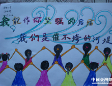 “我能做你坚强的后盾 我们是摧不垮的河堤”,这是来自5.12地震重灾区小朋友对台湾受灾同胞的祝福。台风“莫拉克”使台湾遭受了50年来最严重的水灾,灾情牵动两岸同胞。5.12地震重灾区四川省广元市朝天区曾家小学的5名小学生,用稚嫩的手绘制出一幅幅图画,代表曾家小学的全体学生,向在“莫拉克”台风中受灾的台湾...