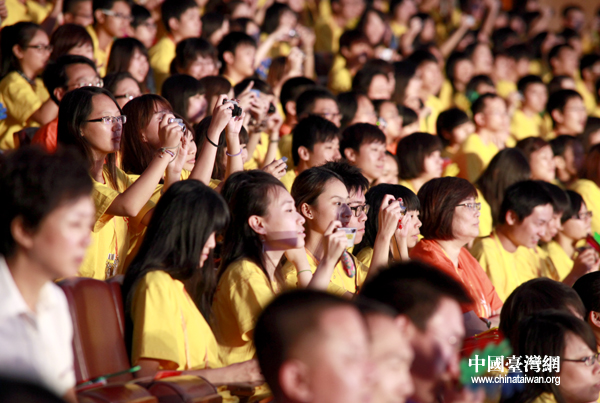 面对如此精彩的演出和众多云集的明星大腕,青年们忍不住拿出自己的相机拍照留念。(中国台湾网 普燕 摄)