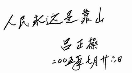 7月26日晚,北戴河休养地,大海的涛声阵阵传来,显得更加静谧。吕正操这位鹤寿101岁的老将军,像每天一样,看了新闻,写好日记,但与往日不同的是,今天还实现了一个特殊的心愿:面对我们带去的冀中人民的问候,欣然提笔,一气呵成这诤诤挚言,并深情地签上自己的名字。之后,他郑重托付本报捎给冀中的父老乡亲。