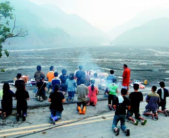白幡飘飘,幸存的小林人看着消失的家,无不痛彻心扉。(芮文辉)
