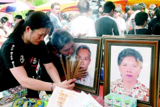 层层迭迭的牌位,代表挽不回的生命,梵唱声中,家属泪流不止,哭嚎声此起彼落。乡公所准备的400多个神主牌,全数用完还不够。