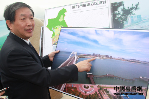 厦门市副市长潘世建向记者描绘新区愿景。(中国台湾网 董洁 摄)
