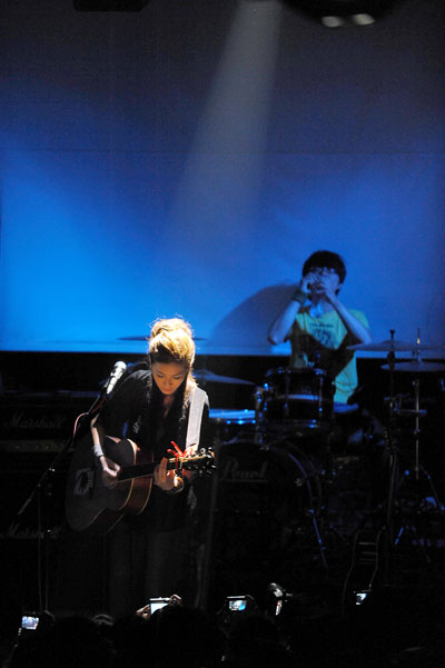 张悬开场就给了武汉观众一个惊喜,她在台上自弹自唱《无与伦比的美丽》,把这首歌献给当晚的观众。接下来乐队加入演出,旋即奏出《Live酒馆300秒》和《嫁祸进行式》。张悬和乐队似乎把广州场没有发挥出的力量都积攒到了武汉的演出中,乐队迅速进入状态。张悬还趁换乐器的空档,边请教前排的观众,边用武汉话向观众问好。