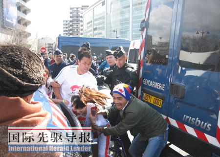 本报记者亲眼看到,一个“藏独”分子突然跳进安全防护栏,旁边的法国警察眼疾手快,迅速把他按倒在地,然后扔出了安全防护栏。即使遇到一些政客出来挑事,警察也同样不会客气。据英国《卫报》记者记述,一个巴黎市绿党议员在火炬接力开始时突然表示抗议,很快被警察请了出去。然而正如那位中国记者所说,“气囊”毕竟不是“金钟罩”。“面对从各个角落蹦出来的捣乱分子,面对捣乱分子乱扔东西,警察们偶尔也会觉得首尾难顾。这时候,现场指挥人员只能让火炬手上车,甚至主动熄灭火炬。”