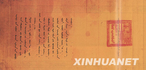 这是雍正元年(公元1723年)雍正皇帝封赏六世达赖喇嘛的敕谕。 新华社发 组图:历史档案证明:历世达赖喇嘛都经中央政府认定、册封