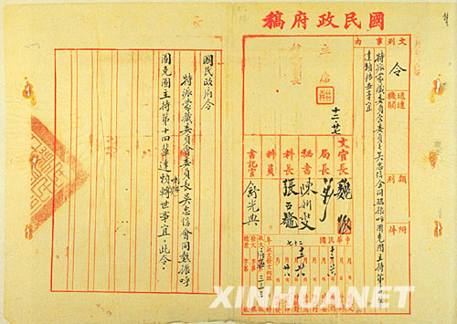 这是1938年国民政府特派蒙藏委员会主任吴忠信主持第十四世达赖喇嘛转世事宜的令。 新华社发