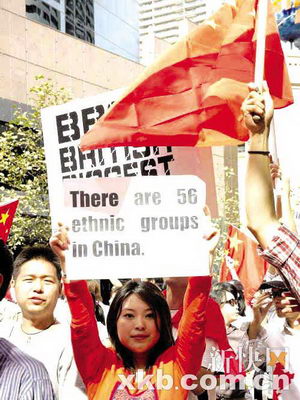 约6000以悉尼留学生及各行各业工作者为主的在澳华裔,4月13日走上街头,举行声势浩大的和平游行及集会,谴责“3·14”拉萨打砸抢烧暴力事件,抵制部分西方媒体不负责任的歪曲报道,声援将于8月份举行的北京奥运会。虽然在游行的后半程天降暴雨,绝大部分与会者仍冒雨坚持留在集会现场。如此大规模的爱国游行,在悉尼侨界史大概也算绝无仅有。除了悉尼外,墨尔本也有数千民众由联邦广场出发,举行迎奥运反“藏独”的游行活动。