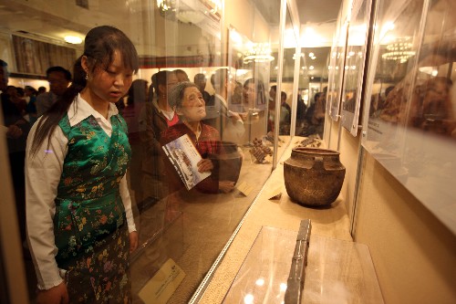 新华社北京5月4日电(魏武、李世钰)4日的北京民族文化宫内,已进入第4天的“西藏今昔”大型主题展展厅里依然人来人往,络绎不绝。再现西藏今昔巨变的160件陈列品、400余张图片和多部音像资料,让前来观展的中外观众“零距离”地感受到西藏700多年来,尤其是最近半个世纪所经历的历史沧桑。