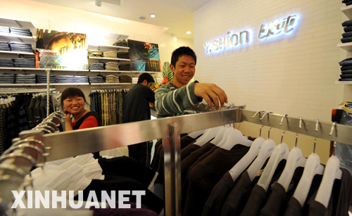 5月8日,拉萨“以纯”服装店重新开业,售货员正在整理货架。“以纯”服装店在拉萨“3·14”打砸抢烧事件中遭到严重破坏,5名少女被不法分子活活烧死。4月11日,首个拿到拉萨“3·14”受损商户财政贴息贷款100万元的“以纯”服装店正式开始清场装修。 新华社记者 觉果 摄