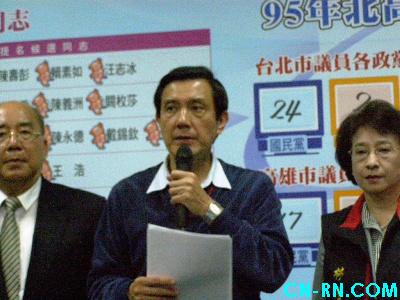 中国台湾网12月9日消息 据台媒报道,台北高雄市长选举结果今晚揭晓,国民党主席马英九在吴伯雄等多位国民党副主席的陪同下举行记者会,发表对选举结果的谈话。