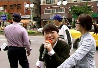 被赶出门外的周玉蔻不肯善罢甘休。(台湾东森新闻图片)
