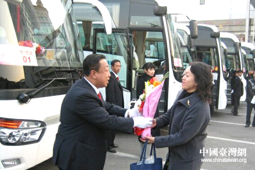 高山族的陈军代表即将登车。迎接他们的司机师傅已经接待人大台湾团八个年头了,他每次都自费给代表们准备鲜花。唐师傅说:两岸问题受关注,对台工作难度大,台湾团的代表很辛苦,他要用自己的服务,让代表们放心、舒心、开心。
