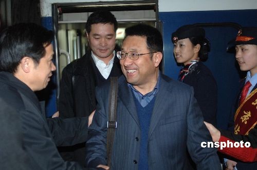 二月二十八日清晨,参加全国政协十一届一次会议的吉林委员乘坐火车抵达北京,他们是首批抵京的京外委员。 中新社发 廖攀 摄