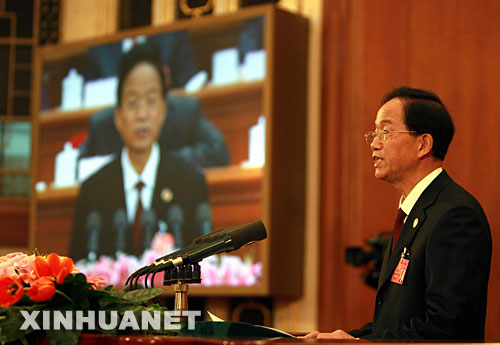 3月10日,十一届全国人大一次会议在北京人民大会堂举行第三次全体会议。最高人民检察院检察长贾春旺作最高人民检察院工作报告。 新华社记者鞠鹏摄