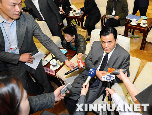 3月10日,出席十一届全国人大一次会议的台湾省代表团审议最高人民法院工作报告和最高人民检察院工作报告。这是全国人大代表陈清海在接受记者采访。 新华社记者李涛摄