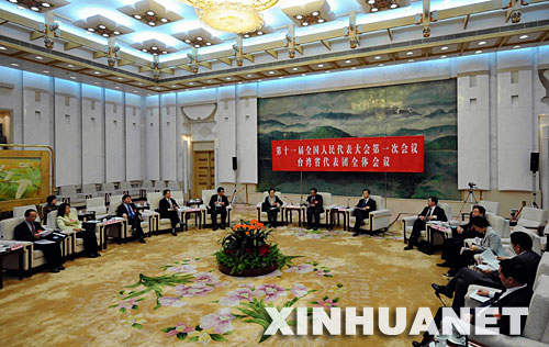 3月10日,出席十一届全国人大一次会议的台湾省代表团审议最高人民法院工作报告和最高人民检察院工作报告。 新华社记者李涛摄