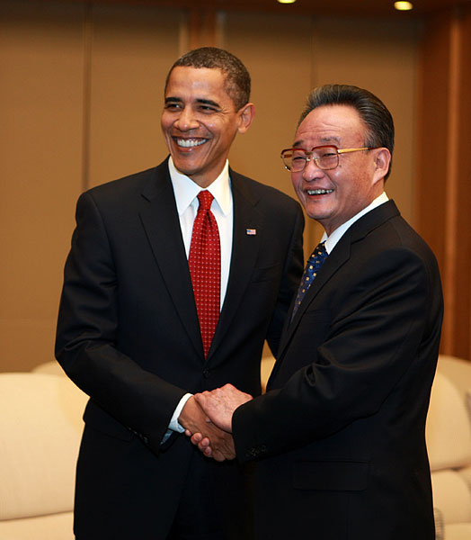 11月17日,中国全国人大常委会委员长吴邦国在北京人民大会堂会见美国总统奥巴马。 新华社记者鞠鹏摄