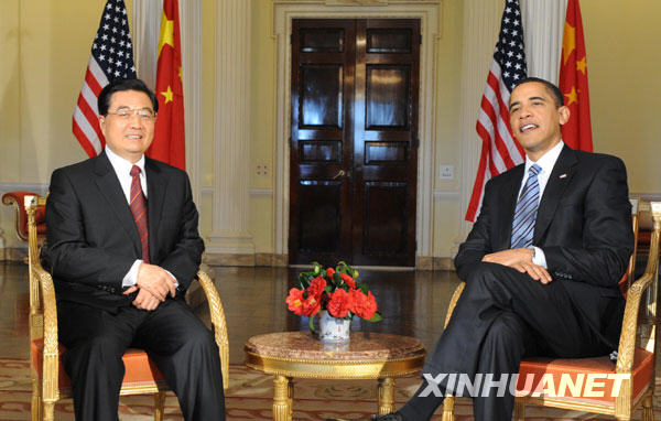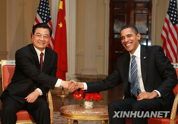 4月1日,国家主席胡锦涛同美国总统奥巴马在伦敦举行会晤。新华社记者 鞠鹏摄