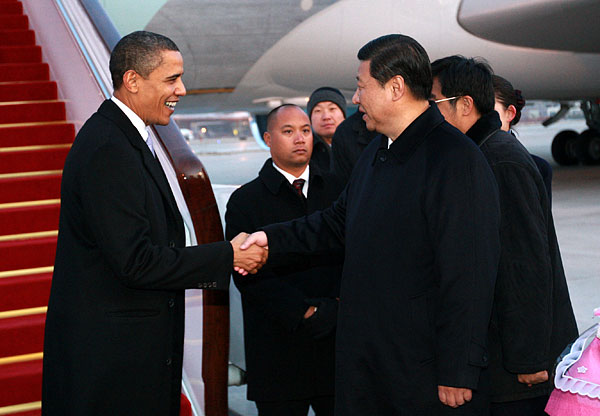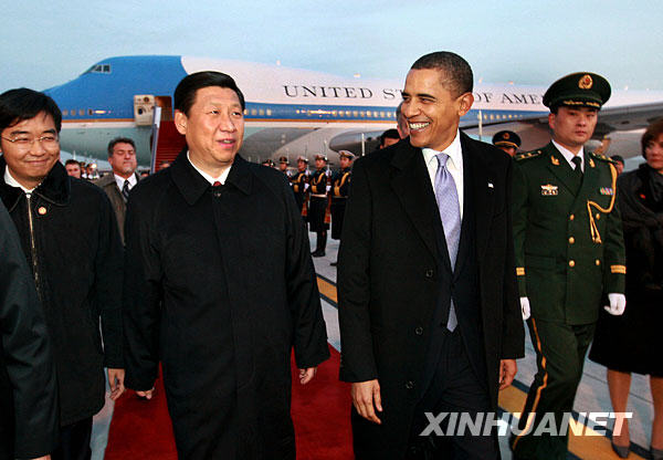11月16日下午,美国总统奥巴马乘专机从上海飞抵北京,国家副主席习近平前往北京首都国际机场迎接。新华社记者 庞兴雷 摄