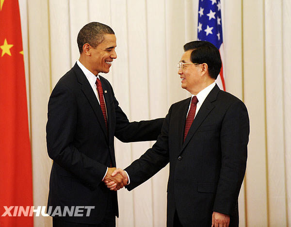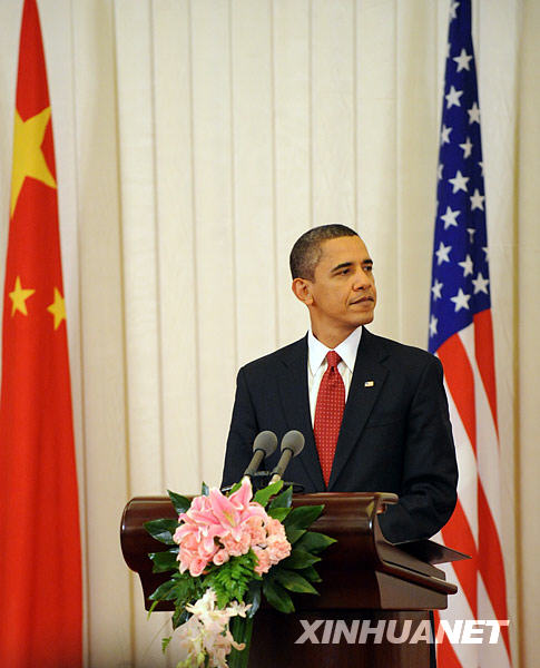 11月17日,中国国家主席胡锦涛和美国总统奥巴马在北京人民大会堂共同会见中外记者。新华社记者刘建生摄