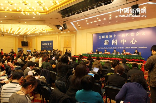 全国政协十一届四次会议在梅地亚两会新闻中心举行记者会。