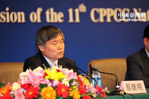 中国台湾网3月5日北京消息 3月5日下午14时30分,全国政协十一届四次会议在梅地亚两会新闻中心举行记者会,主题是“政协委员谈协调推进城镇化与新农村建设”。全国政协委员蔡继明、王健林、钱克明、李成贵、吴焰出席并回答记者的提问。 (刘洋、张魏波摄影报道)