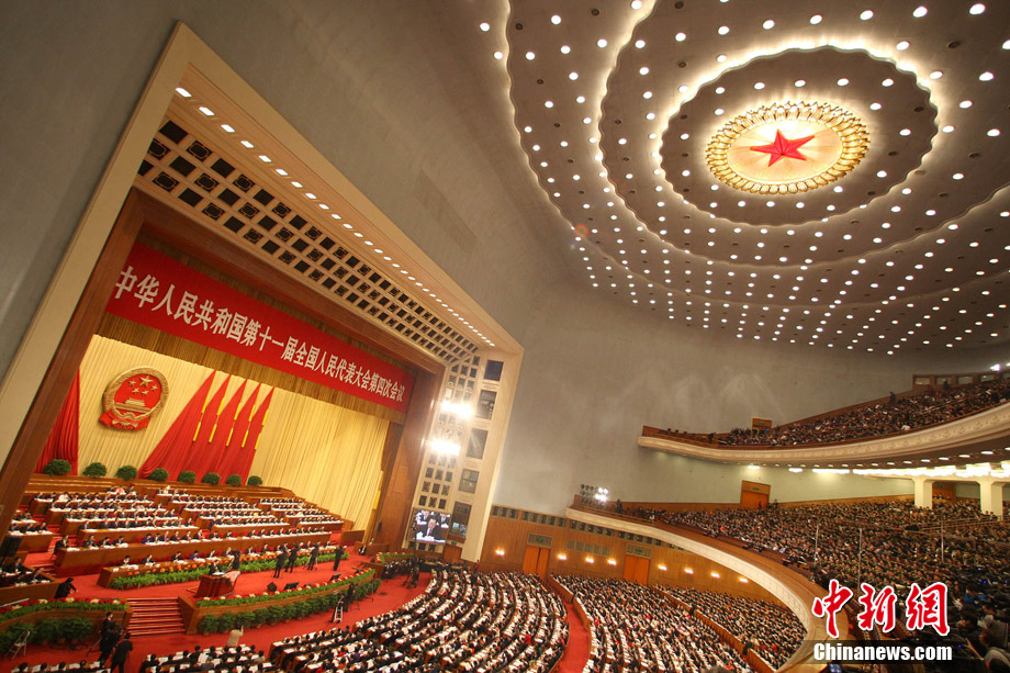 3月5日上午,十一届全国人大四次会议在北京人民大会堂开幕。 中新社记者 任晨鸣 摄