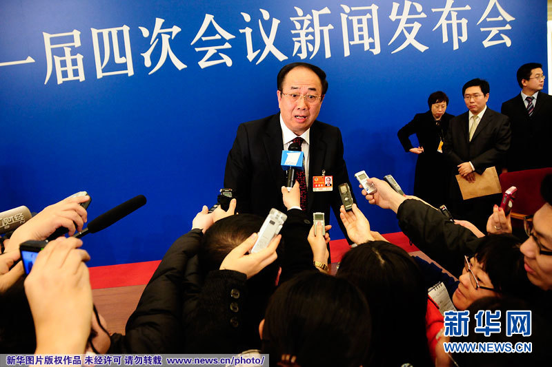1、“这么多人!”(设计台词)。图为全国政协十一届四次会议新闻发言人赵启正在发布会后面对一窝蜂拥上来的记者。新华网 翟子赫 摄