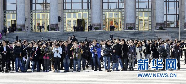 3月3日,中国人民政治协商会议第十一届全国委员会第四次会议在北京人民大会堂开幕。国内外记者云集北京采访。 新华社记者 任勇 摄