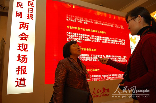 记者随机采访了几位代表,湖南省人大代表阳国秀说,人民网给广大人民群众提供了一个议事的地方,将对国家发展的意见建议敞开心扉说出来,给有话想说的群众一个倾诉的地方。阳国秀表示,自己的朋友、同事都很喜欢人民网,认为人民网的内容是客观的,公正的。