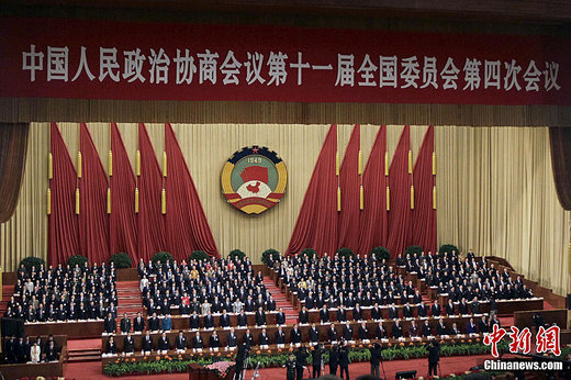 3月3日下午3时,全国政协十一届四次会议在北京人民大会堂开幕。中新社记者 盛佳鹏 摄