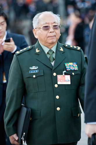 成都军区副司令员吕登明走向会场。(摄影 肖春阳 闫文)