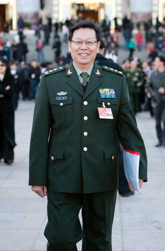 第二炮兵原副政委罗东进迈入会场。(摄影 肖春阳 闫文)