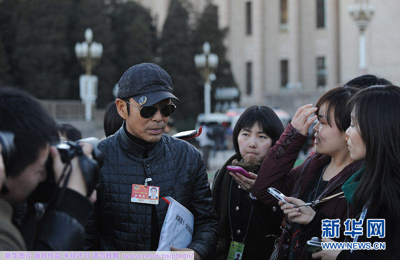 3月3日,中国人民政治协商会议第十一届全国委员会第四次会议在北京人民大会堂开幕。这是记者采访抵达天安门广场的全国政协委员陈道明。新华网发(翟子赫 摄)