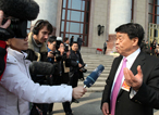 中国台湾网3月6日北京消息 历年“两会”,人大代表都会成为各路媒体记者争相追逐的焦点。一大早,媒体记者就早早守候在人民大会堂,等待采访人大代表。宋玥璘、黄宗爱、张魏波摄影报道