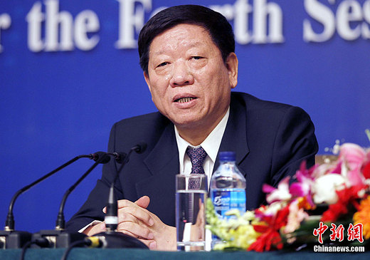 3月8日上午,国家人力资源和社会保障部部长尹蔚民在全国人大举行的新闻发布会上,就“农民工权益、大学生就业、城乡住房、养老保险、工资差别”等社会热点问题回答记者提问。中新社发 宋吉河 摄