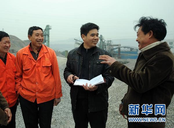康厚明(右二)在与几位农民工交流(2月22日摄)。作为农民工代表,康厚明在参加的历次全国“两会”中,提交的议案一直都聚焦在为农民工争取劳动权益,获得身份尊严上。康厚明说自己外出打工30多年完成从“农民—农民工—新市民”的转型,就是为了不断追求更好的、有尊严的生活。康厚明对记者说,今年“两会”期间,我的目光还是更多地放在关注我们农民工的生存、生活状况等方面,希望我们农民工的收入随着社会的发展一步步得到提高。新华社记者 周衡义摄