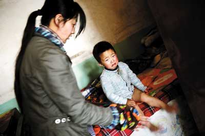 山西,食用三鹿奶粉患有肾病的孩子(资料图片)。羊城晚报记者 何奔 摄