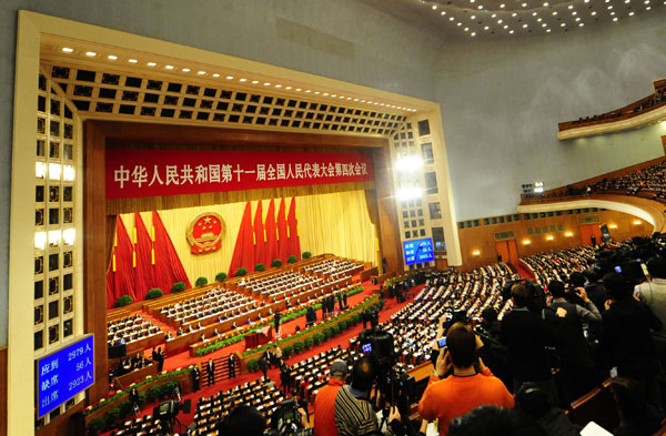 3月5日,第十一届全国人民代表大会第四次会议在北京人民大会堂开幕。新华社记者任勇摄