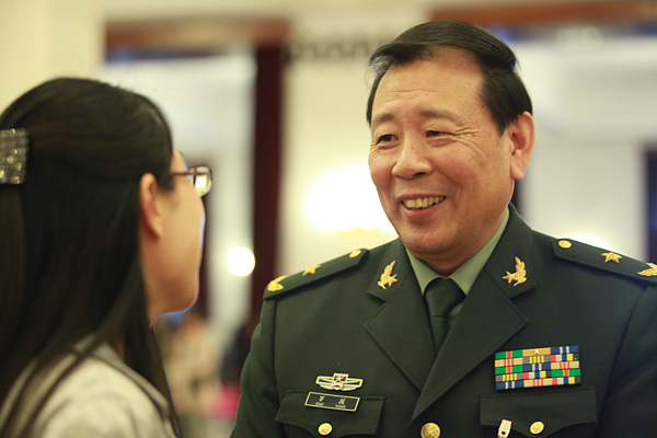3月10日15时,全国政协十一届四次会议第四次全体会议在人民大会堂举行。图为全国政协委员罗援接受新华网记者专访。吴莼 摄