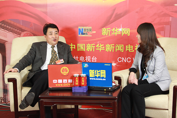 3月10日15时,全国政协十一届四次会议第四次全体会议在人民大会堂举行。图为全国政协委员姜昆接受新华网记者专访。吴莼 摄