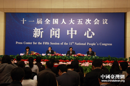 十一届全国人大五次会议举行记者会,农业部部长韩长赋回答中外记者的提问。(中国台湾网 王伟 摄)