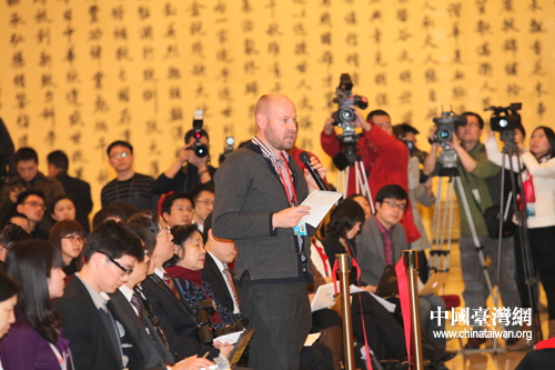 来自路透社的记者向大会发言人提问。
