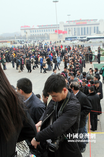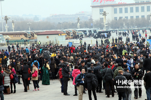 记者排队进入人民大会堂,强大的媒体报道队伍把大会的声音传向世界。