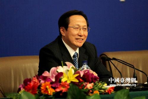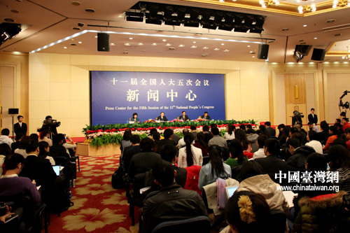 中国台湾网3月9日北京消息 3月9日上午10点,十一届全国人大五次会议在“两会”新闻中心梅地亚多功能中心举行记者会,农业部部长韩长赋,农业部总经济师、新闻发言人陈萌山出席记者会,就“推进农业科技进步,促进增产增收”的相关问题回答中外记者的提问。 (两会记者刘洋、特约记者张魏波摄影报道)