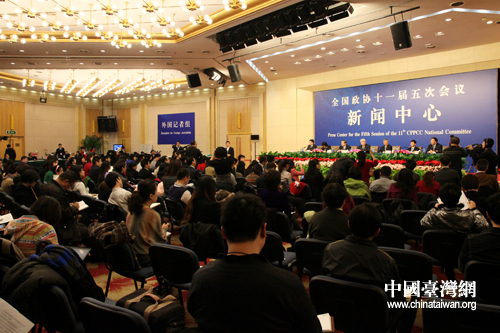 全国政协委员赵平、吴明江、李立明 、陈仲强、吴 明、王执礼出席记者会。