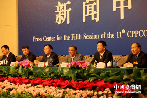 全国政协常委张国宝,全国政协委员邵秉仁、王炳华、李河君、牛文元出席记者会并回答中外记者提问。
